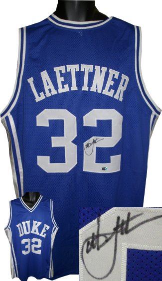 Christian Laettner played college basketball for the Duke University Blue Devils, starring on the 1991 and 1992 NCAA champion teams. He was the only college player selected for the 1992 United States men's Olympic team, nicknamed the "Dream Team". He is one of only four players to play in four consecutive Final Fours, and the only one to ever start in all four Final Fours. He owns the record for most tournament games played (23) out of a maximum possible of 24 in four years at that time. Laettner's #32 jersey was retired in 1992, making him the sixth of thirteen players so honored by Duke. Christian Laettner Duke Blue Devils has hand signed this Blue unlicensed custom-prostyle jersey with twill stitched nameplate and numbers. JSA Hologram and Certificate of Authenticity. Size XL