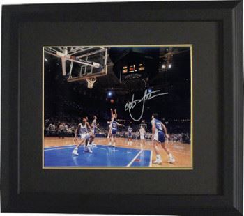 Christian Laettner played college basketball for the Duke University Blue Devils. He was the only college player selected for the 1992 United States men's Olympic team, nicknamed the "Dream Team". This famous shot highlighted his storied college career as a four year starter, four year Final Four participant, two time NCAA champion (91 & 92) and the 1992 AP Player of the Year. This shot was a buzzer beater in the regional final to defeat the Kentucky Wildcats 104-103 in what many consider the greatest game of all-time. Christian Laettner has hand signed this Duke Blue Devils Metallic 8x10 photo. MAB Hologram and Certificate of Authenticity from Athlon Sports Collectibles. Custom Black Mat and Premium Black Color Framed as shown.