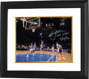 Christian Laettner played college basketball for the Duke University Blue Devils. He was the only college player selected for the 1992 United States men's Olympic team, nicknamed the "Dream Team". This famous shot highlighted his storied college career as a four year starter, four year Final Four participant, two time NCAA champion (91 & 92) and the 1992 AP Player of the Year. This shot was a buzzer beater in the regional final to defeat the Kentucky Wildcats 104-103 in what many consider the greatest game of all-time. Christian Laettner has hand signed this Duke Blue Devils Metallic 8x10 photo with The Shot 3/28/92 inscription. MAB Hologram and Certificate of Authenticity from Athlon Sports Collectibles. Custom White Mat and Premium Black Color Framed as shown.