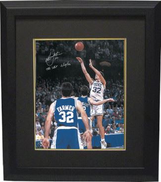 Christian Laettner played college basketball for the Duke University Blue Devils. He was the only college player selected for the 1992 United States men's Olympic team, nicknamed the "Dream Team". This famous shot highlighted his storied college career as a four year starter, four year Final Four participant, two time NCAA champion (91 & 92) and the 1992 AP Player of the Year. This shot was a buzzer beater in the regional final to defeat the Kentucky Wildcats 104-103 in what many consider the greatest game of all-time. Christian Laettner has hand signed this Duke Blue Devils 16x20 photo with dual "The Shot" & "3/28/92" inscriptions. Certificate of Authenticity from Athlon Sports. Custom Black Mat and Premium Black Color Framed as shown