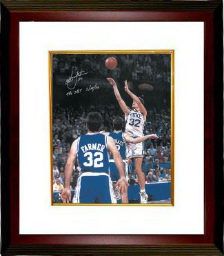 Christian Laettner played college basketball for the Duke University Blue Devils. He was the only college player selected for the 1992 United States men's Olympic team, nicknamed the "Dream Team". This famous shot highlighted his storied college career as a four year starter, four year Final Four participant, two time NCAA champion (91 & 92) and the 1992 AP Player of the Year. This shot was a buzzer beater in the regional final to defeat the Kentucky Wildcats 104-103 in what many consider the greatest game of all-time. Christian Laettner has hand signed this Duke Blue Devils 16x20 photo with dual "The Shot" & "3/28/92" inscriptions. Certificate of Authenticity from Athlon Sports. Custom White Mat and Premium Mahogany Color Framed as shown