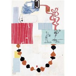 acrylic, oil, pen and ink and paper collage on paper