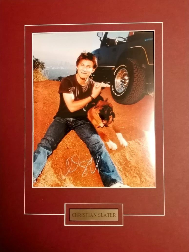 Christian Slater signed 11x8 inch photo. Mounted and supplied with coa.