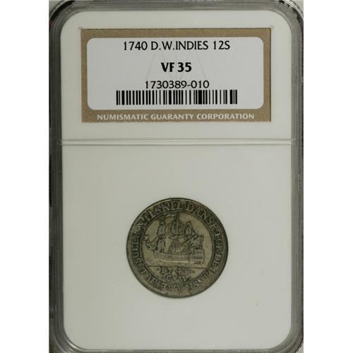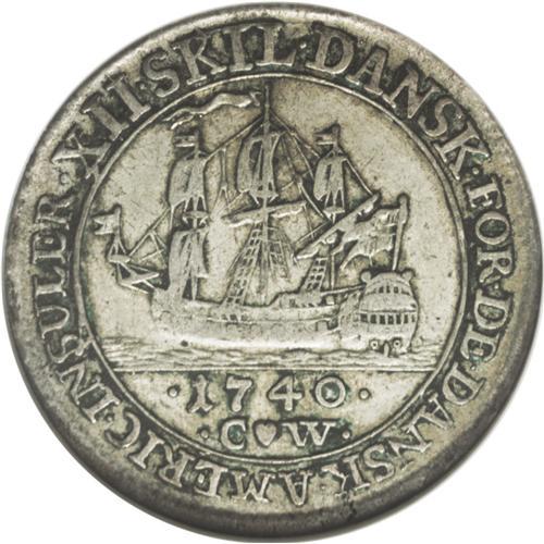 <B>Christian VI 12 Skilling 1740, </B></I>KM4, VF35 NGC, a nicely toned coin featuring a clipper ship in full sail. Very scarce type.<BR><BR><b>Shipping:</b> Coin/Currency (<a target="_blank" href="http://www.heritageauctions.com/common/shipping.php">view shipping information</a>)