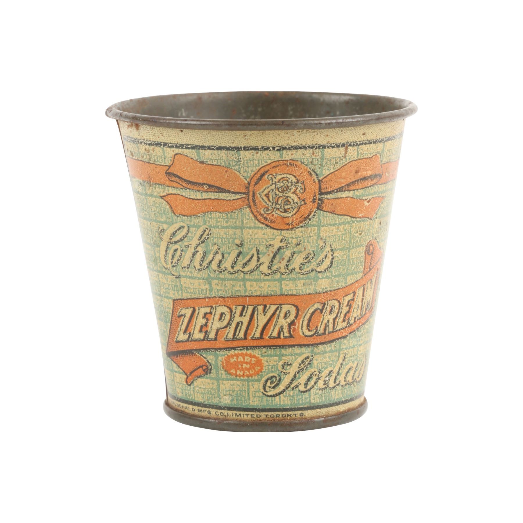 Canadian. Circa 1920. Rare advertising premium.Typical surface crazing. 2.5" x 2.5". $100-200.