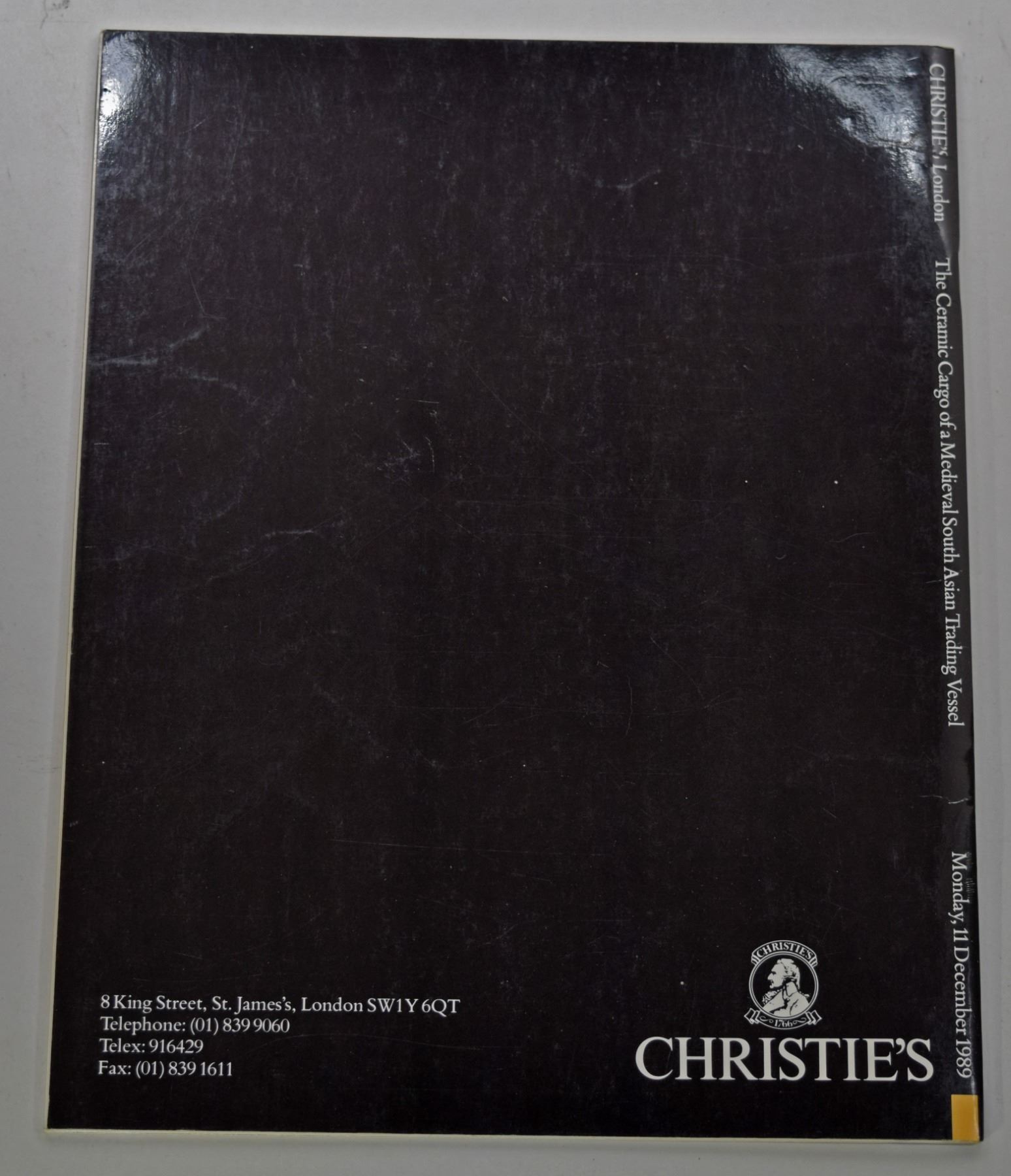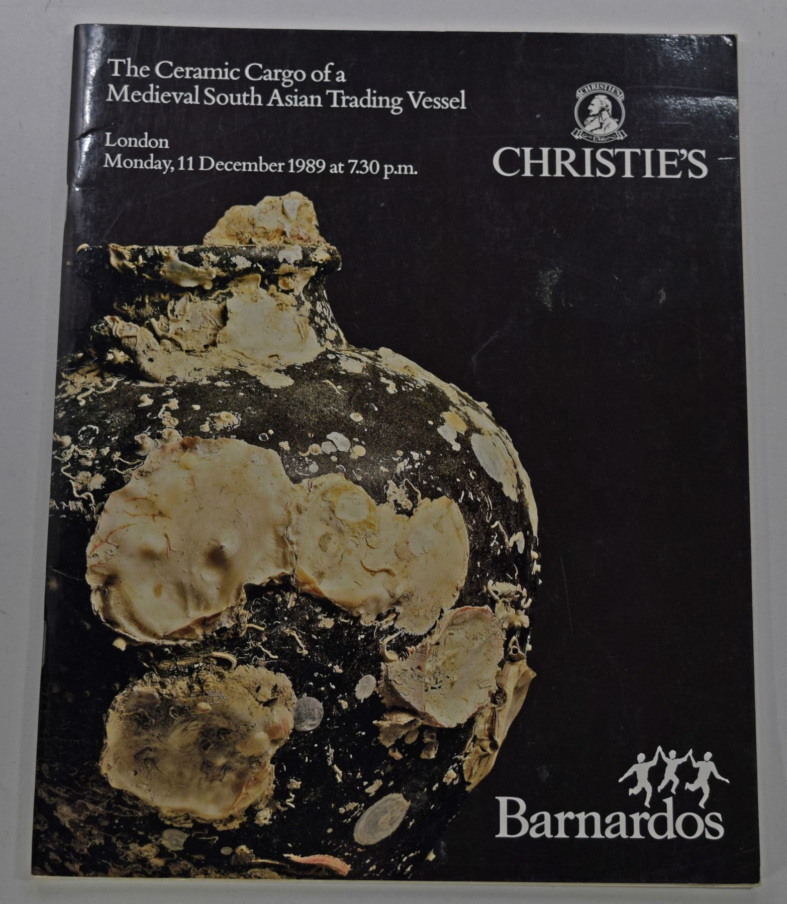Christie's London. (Signed) THE CERAMIC CARGO OF A MEDIEVAL SOUTH ASIAN TRADING VESSEL. December 11, 1989. 4to, 23 pages; Softcover; Signed by Captain Hatcher. This auction catalog contains 51 lots of stoneware from a medieval South Asian trading vessel which sank between the thirteenth and fifteenth century. Subject: History - Sunken Treasure