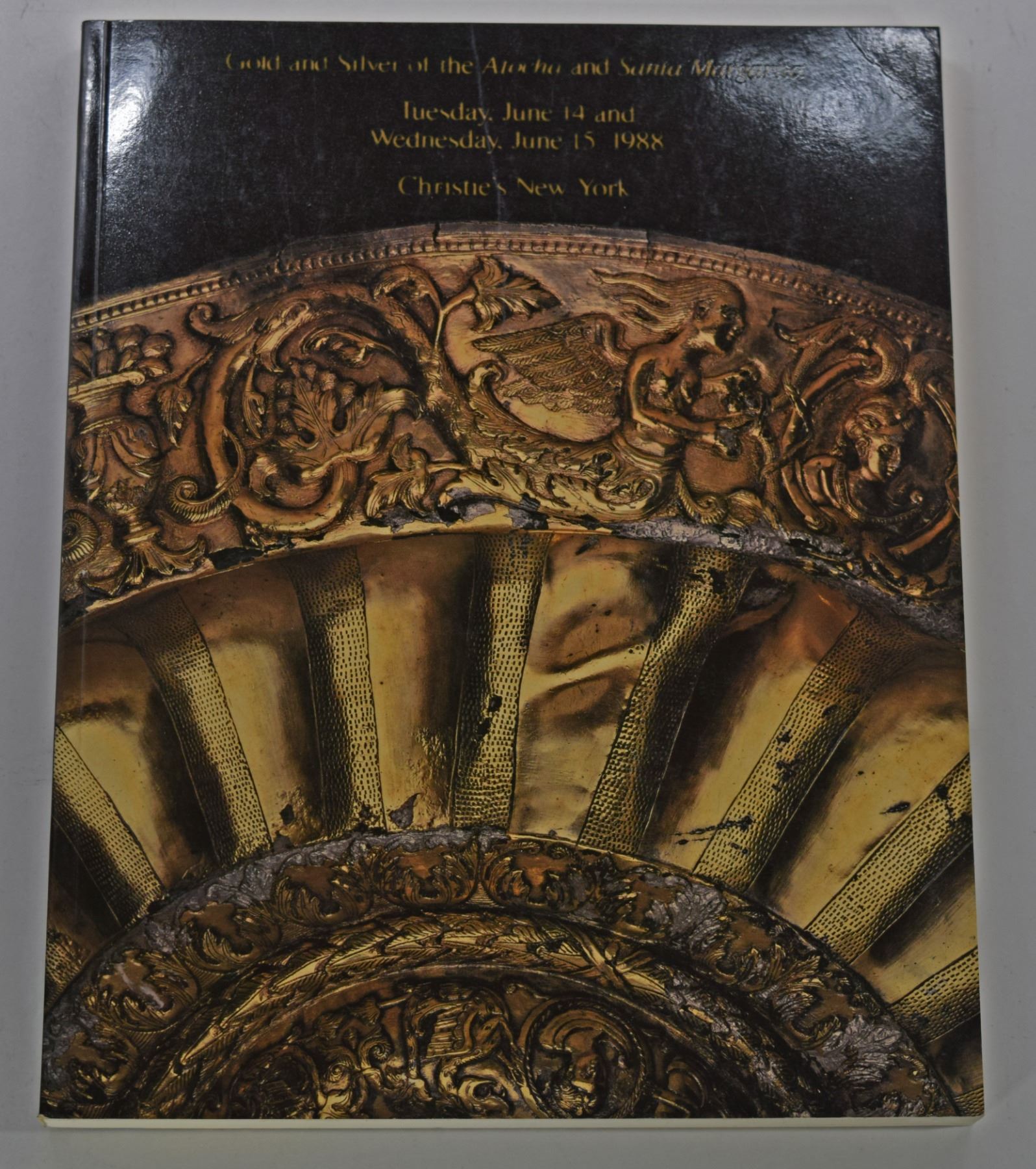 Christie's New York. GOLD AND SILVER OF THE ATOCHA AND SANTA MARGARITA. June 14-15, 1988. 4to, 258 pages; Softcover; This auction catalog contains 360 lots of gold and silver cobs, gold chains, emerald rings, a bronze cannon, 4 astrolabes, a wide variety of artifacts, and both gold and silver bars from the “Atocha” shipwreck, which sank in 1622 off the coast of Key West. This was the largest single auction of “Atocha” material. Also included are 27 lots of gold cobs, ingots and jewelry from the 1715 Fleet, and 2 lots of gold ingots from the 1733 Fleet.