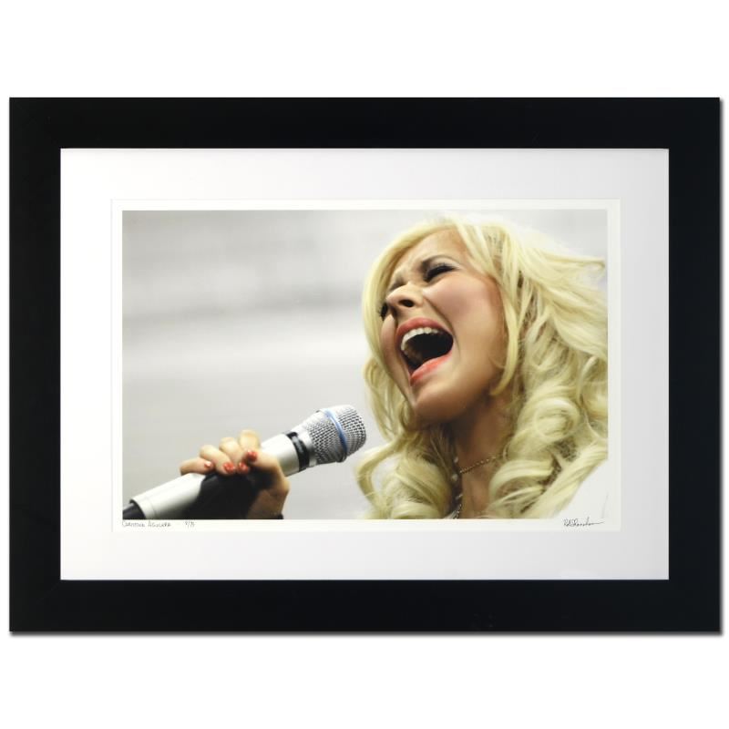 "Christina Aguilera" is a limited edition giclee on paper, numbered and hand signed by acclaimed music industry photographer Rob Shanahan. This piece comes custom framed. Includes Certificate of Authenticity. Measures approx. 32" x 25" (with frame), 22" x 14.5" (image).