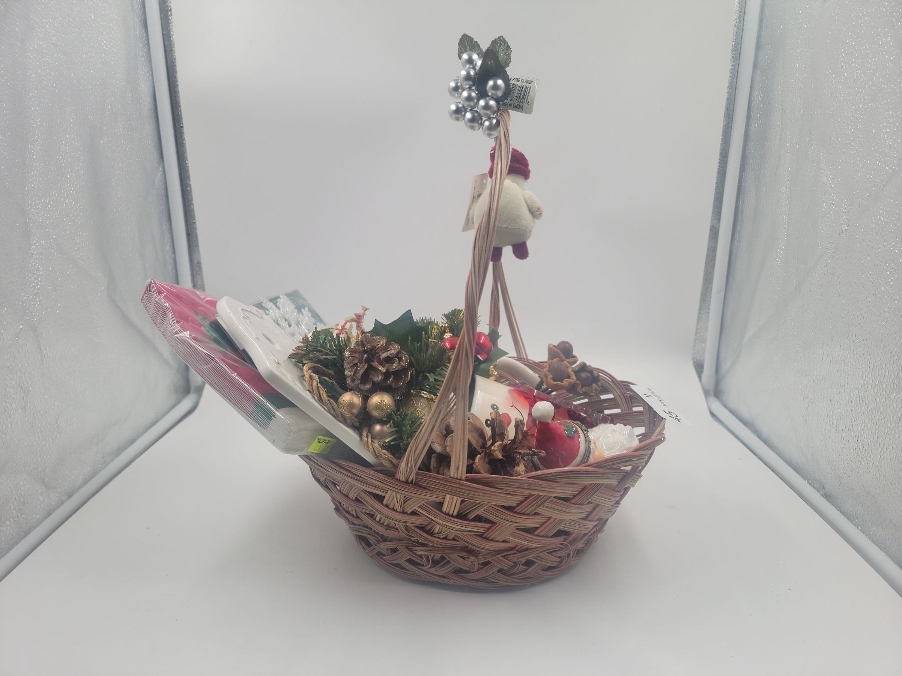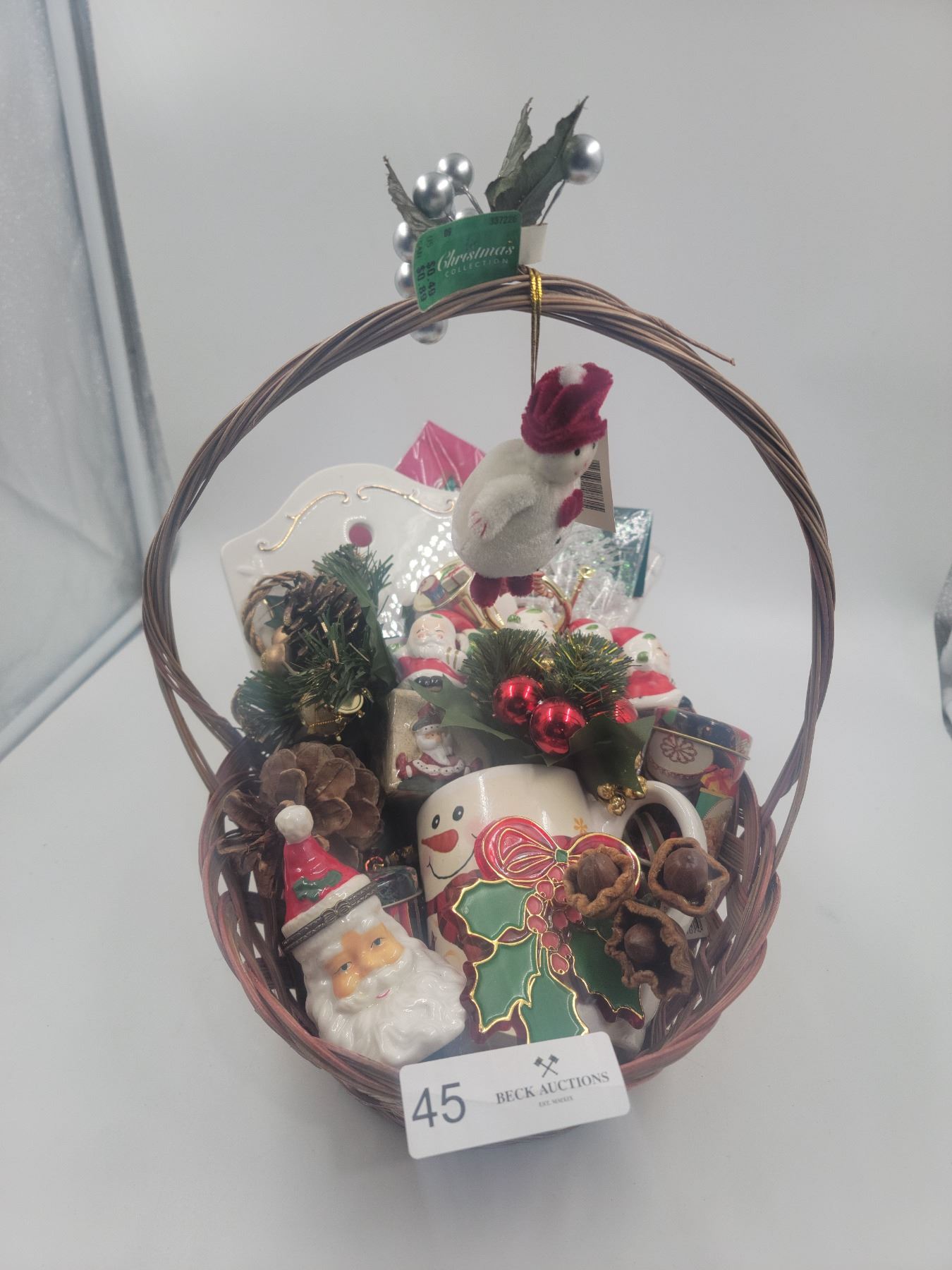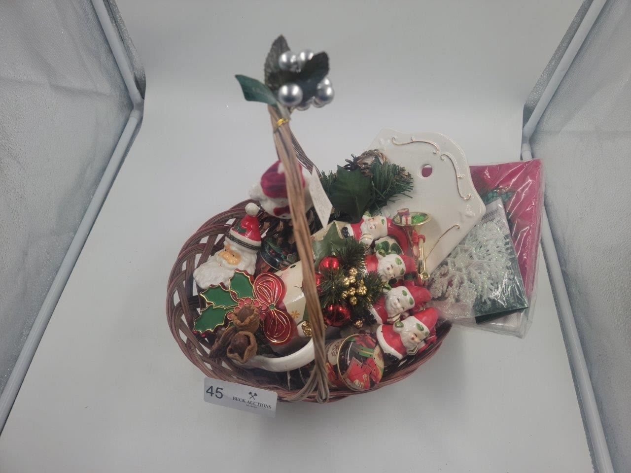 Basket full of salt & pepper shakers, napkin rings, ornaments, napkins and more