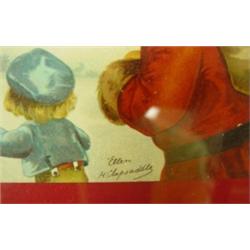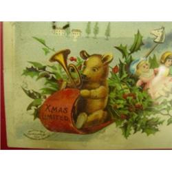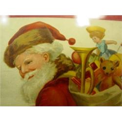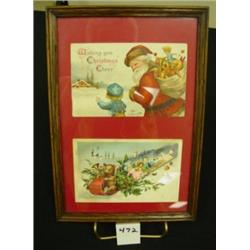 Christmas Clapsaddle postcard. Two framed postcards. Ellen H Clapsaddle Santa and International Art Pub Co. Dated 1907. Both have teddy bears in image. Condition: Good