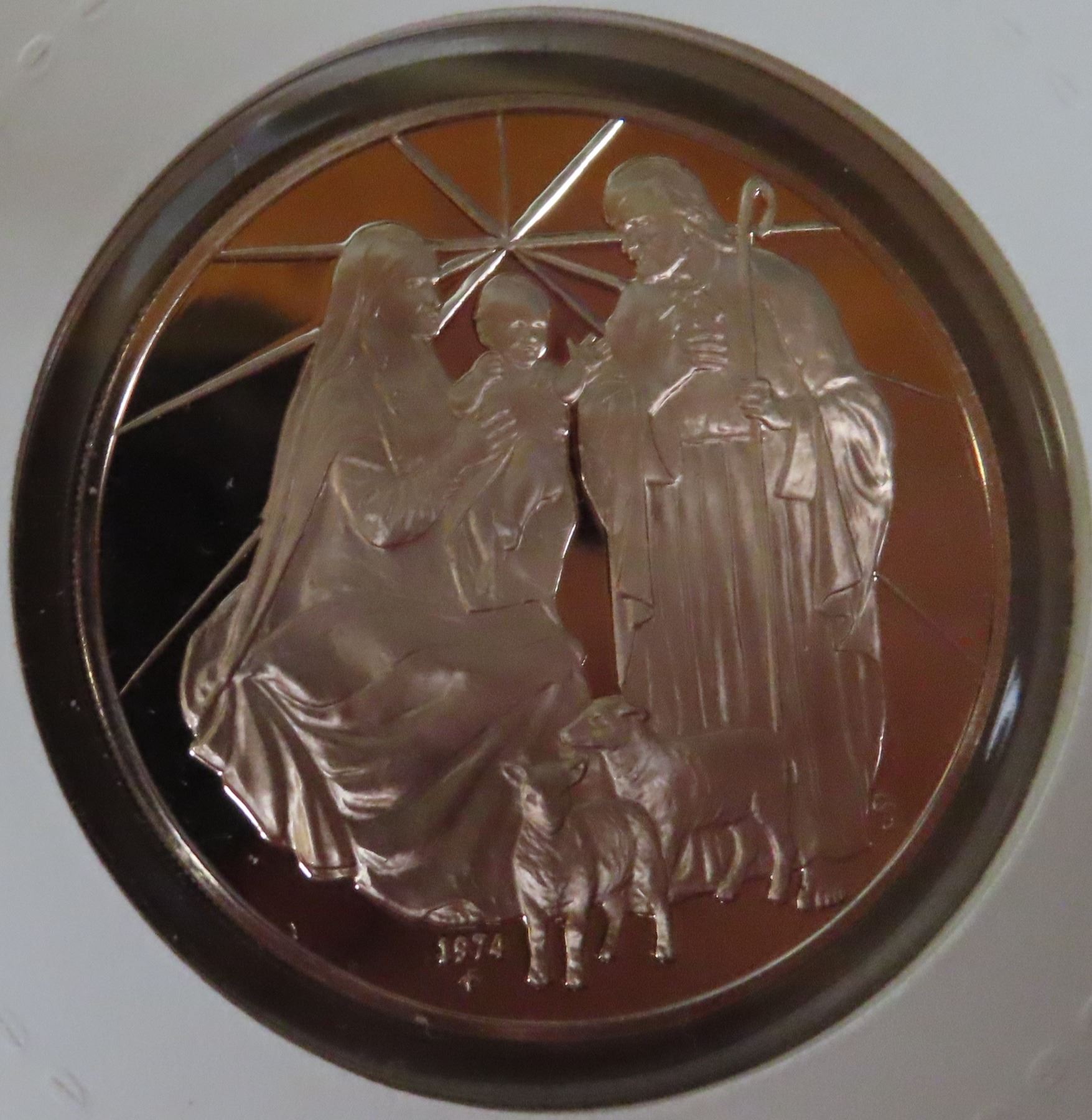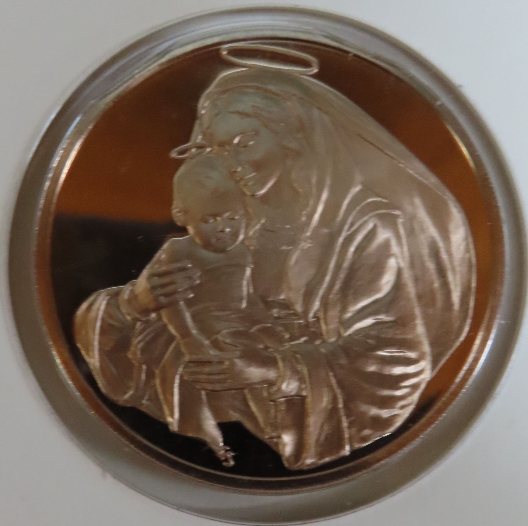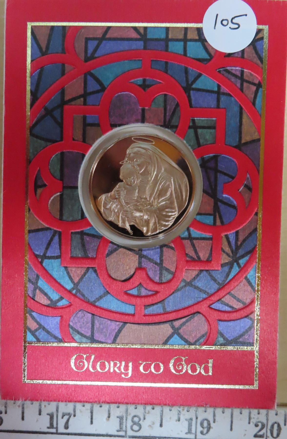 Christmas Card with large Bronze Medal Glory to God. Minted by the Franklin Mint. Proof.