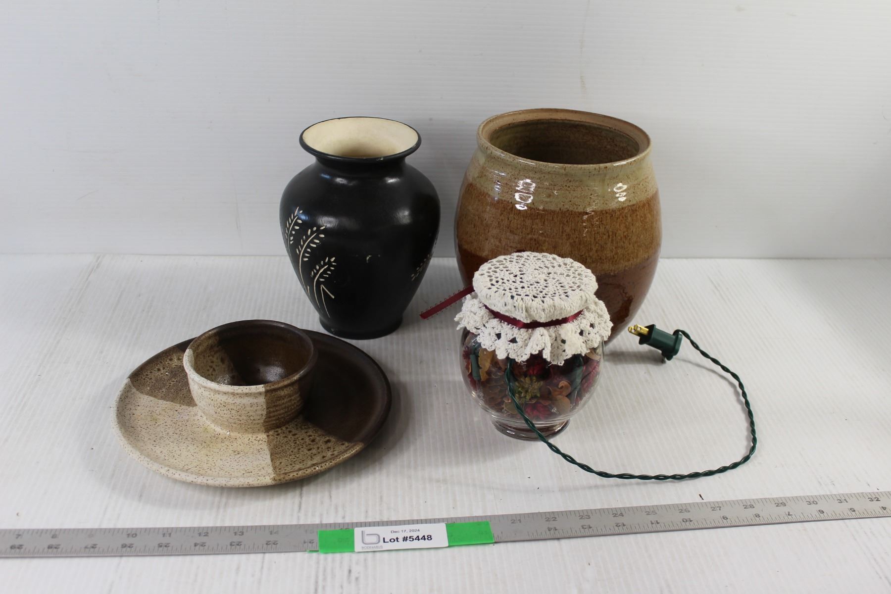 Christmas Decor, (2) Vases, Candle holder