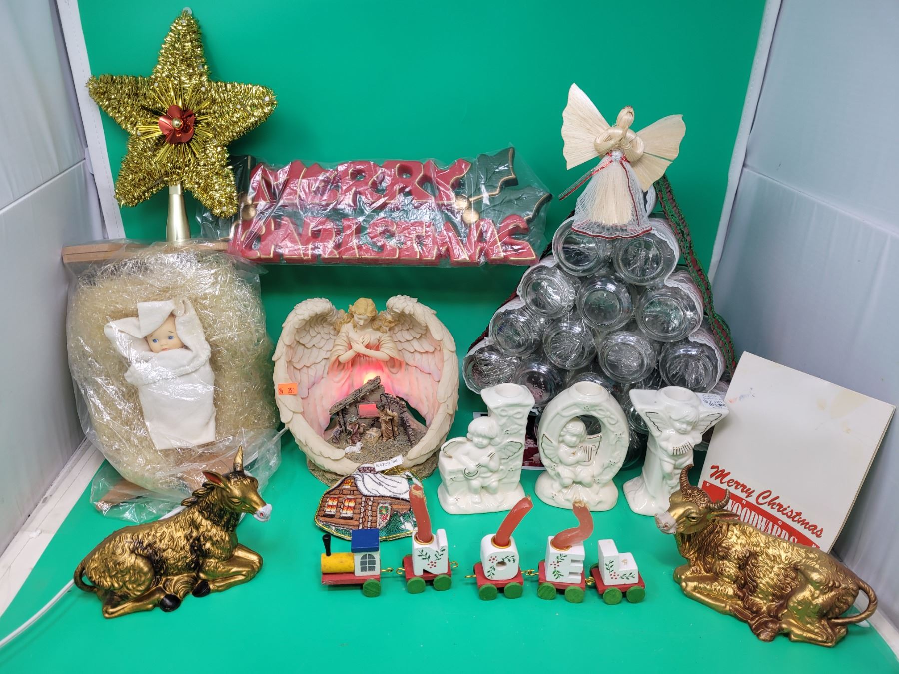 Christmas Decor Lot w/ Light-Up Nativity Scene, Baby Jesus, Candleholders, & More