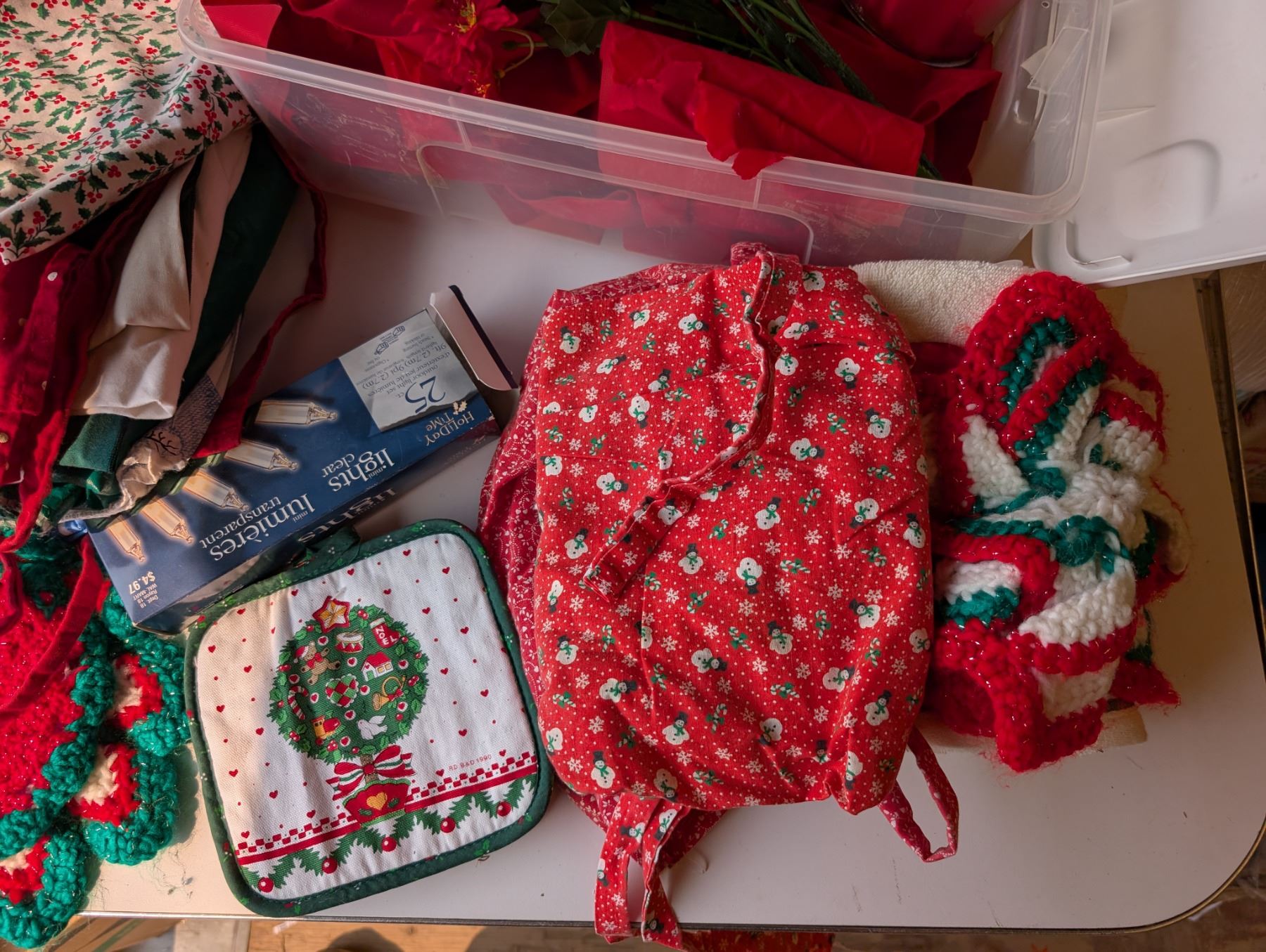 Christmas Decor Various items (For inside Furniture Like Tables, Kitchen items Like Rags and oven Mitts)