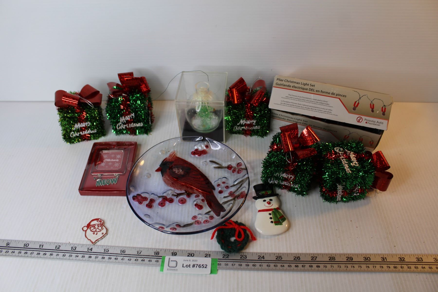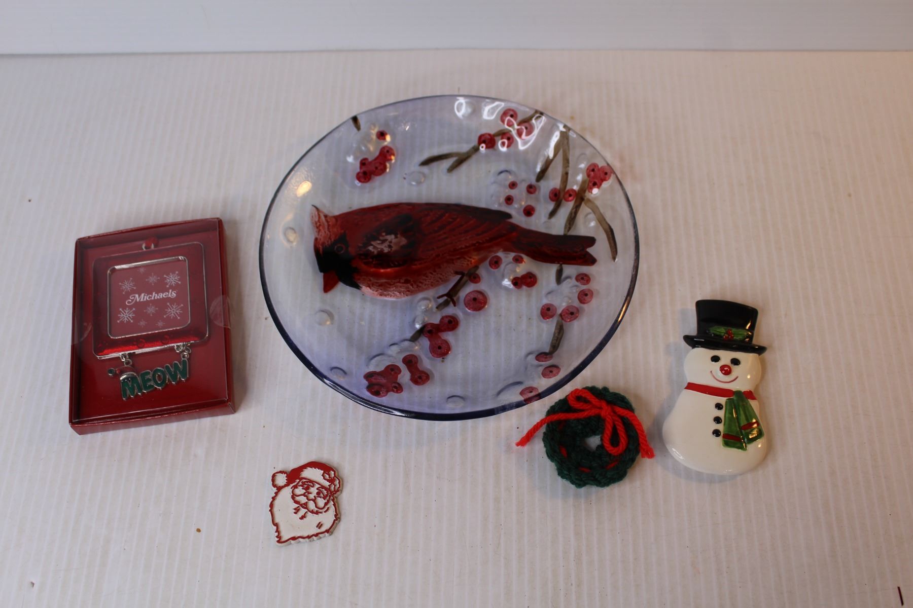 Christmas Decorations - Plier Light Set - Glass Red Bird Plate