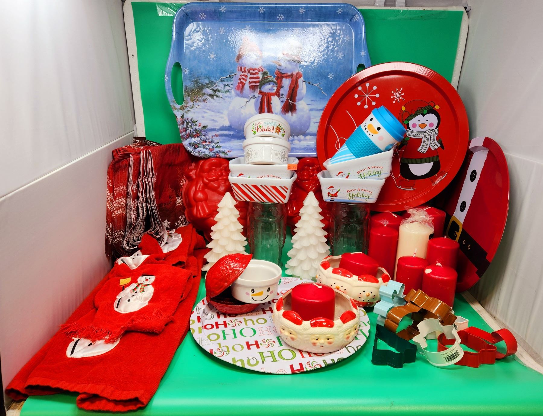 Christmas Kitchen & Home Lot w/ Cast Iron Nutcracker, Serving Trays, Loaf Pans, Candles, & More