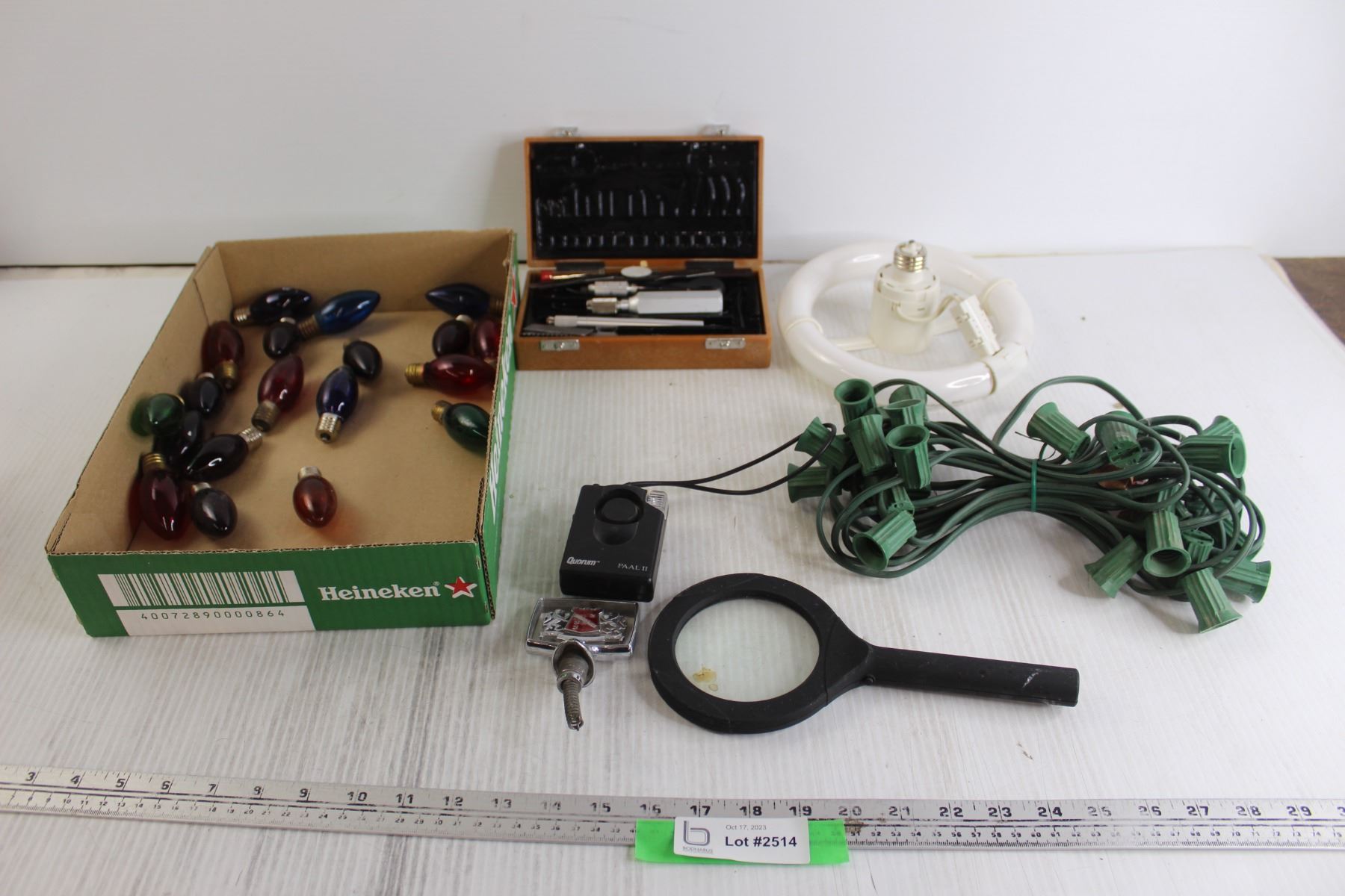 Christmas Lights with Bulbs - Untested, Magnifying Glass, Misc.