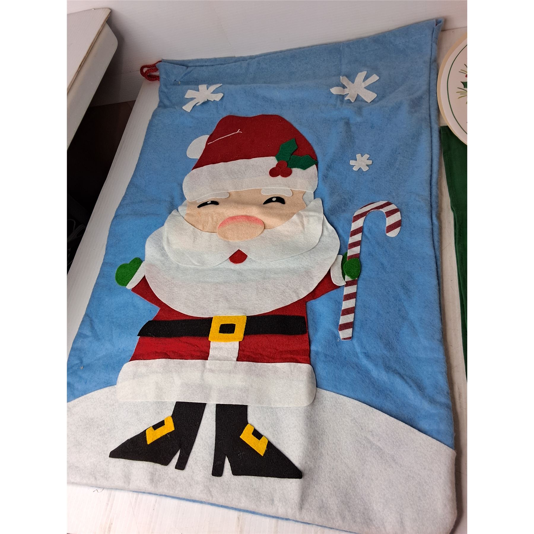 Christmas Lot- Fabric Santa Bag 18 x 26.27 , (4) Placemats, (2) Tablerunners