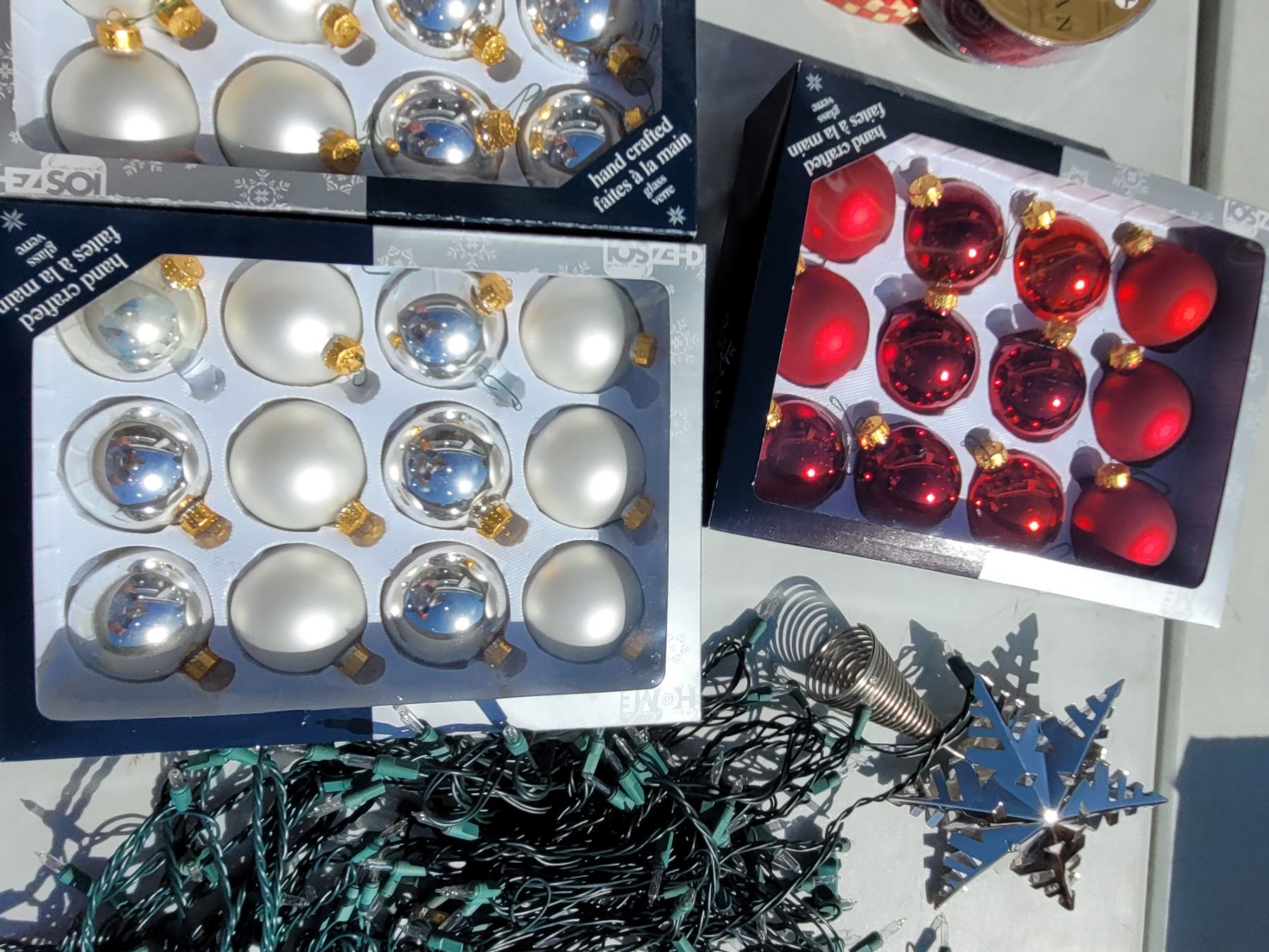 Christmas Lot - new Balls, Lights, Ribbon