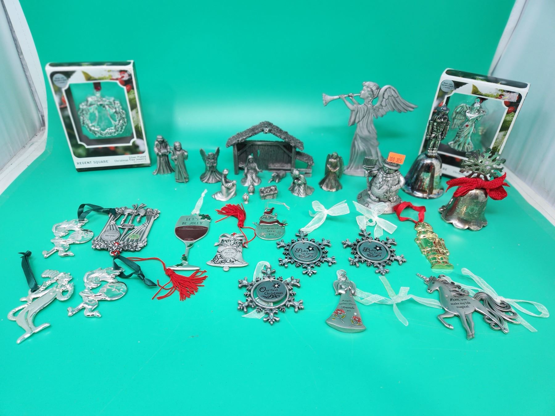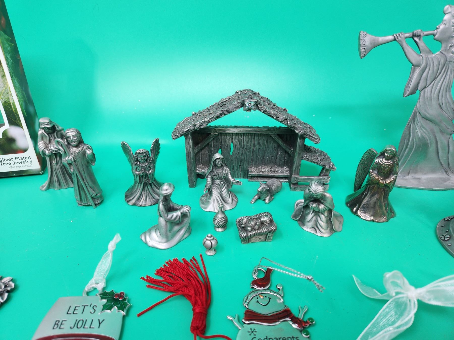 Christmas Metal Ware Lot w/ Avon Ornaments, Nativity Scene, & More