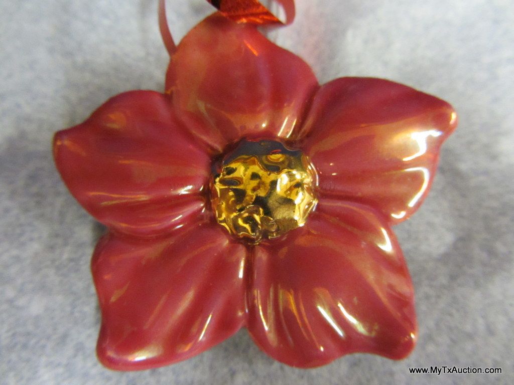 This pin/pendent is a beautiful poinsettia with god colored center. Can be worn as a pin or hang it off your favorite chain or slide.