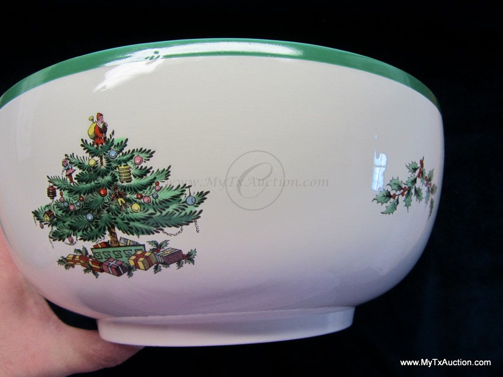 This round serving bowl from Spode features the popular Christmas Tree designs # S3324-U '1995'. Perfect for serving vegetables, salads, desserts and more. This attractive dish measures 9" in diameter x 4.25" deep.