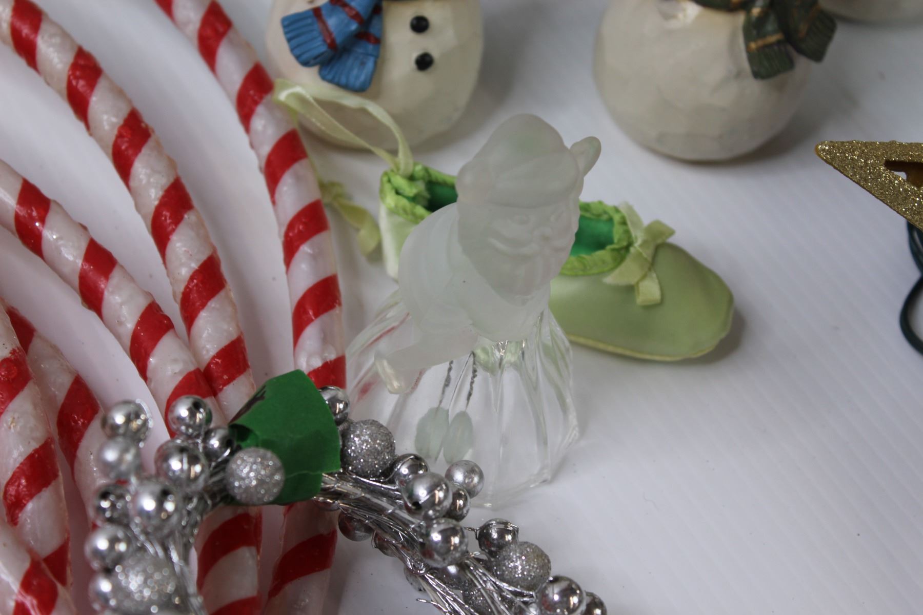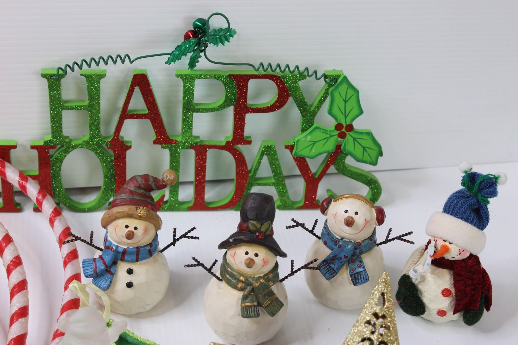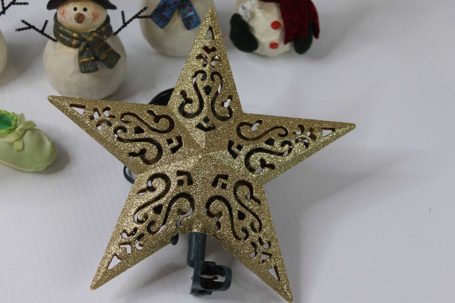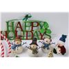 Christmas Tree Light-up Star (Works), (4) Snowmen, Happy Holidays Sign, Clear Glass Santa Bell, Cand