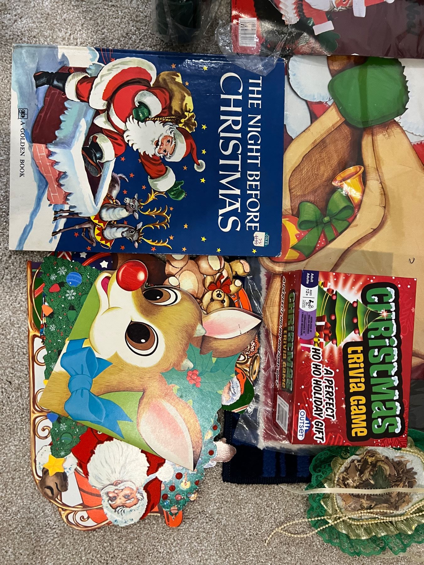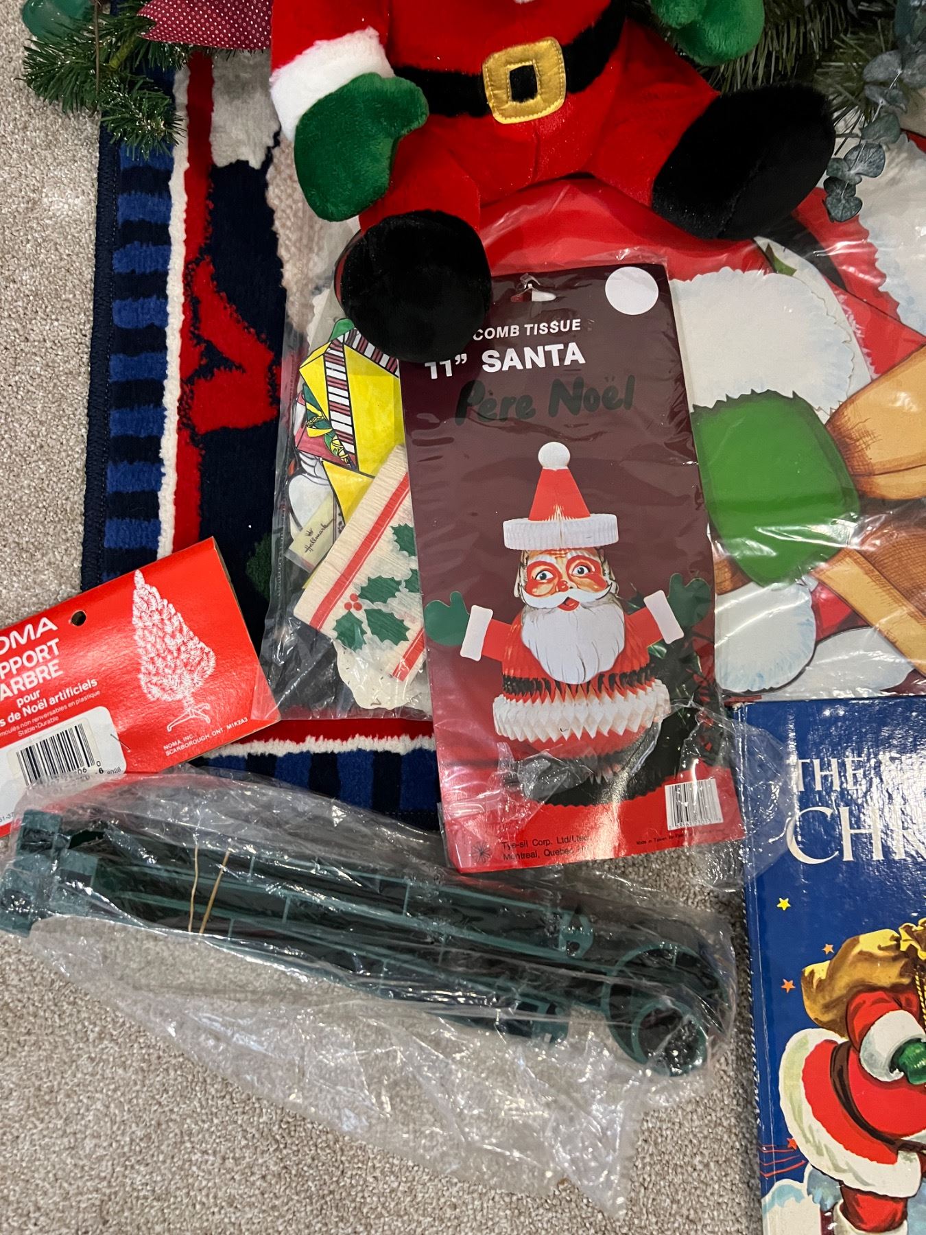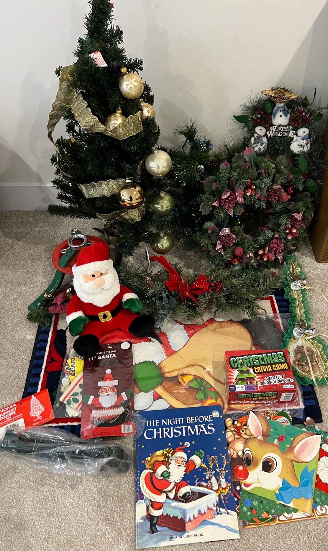 Includes a 34x20" rug, 3' miniature Christmas tree, wreaths, Christmas Trivia Game, and more