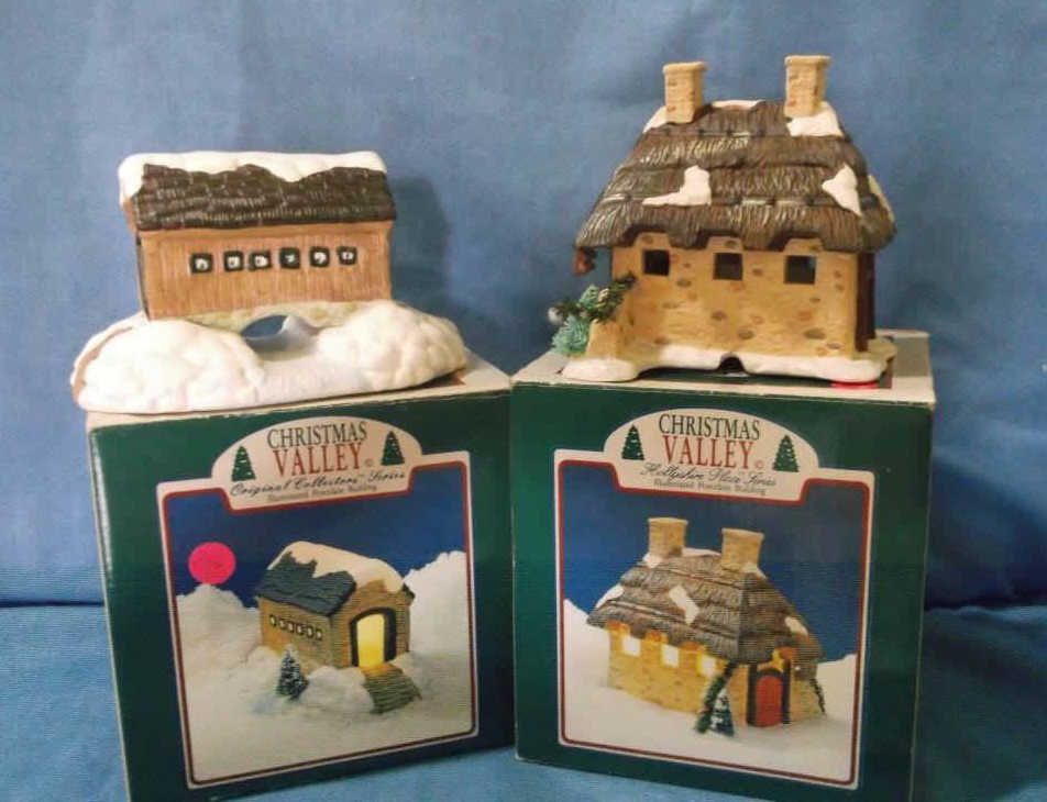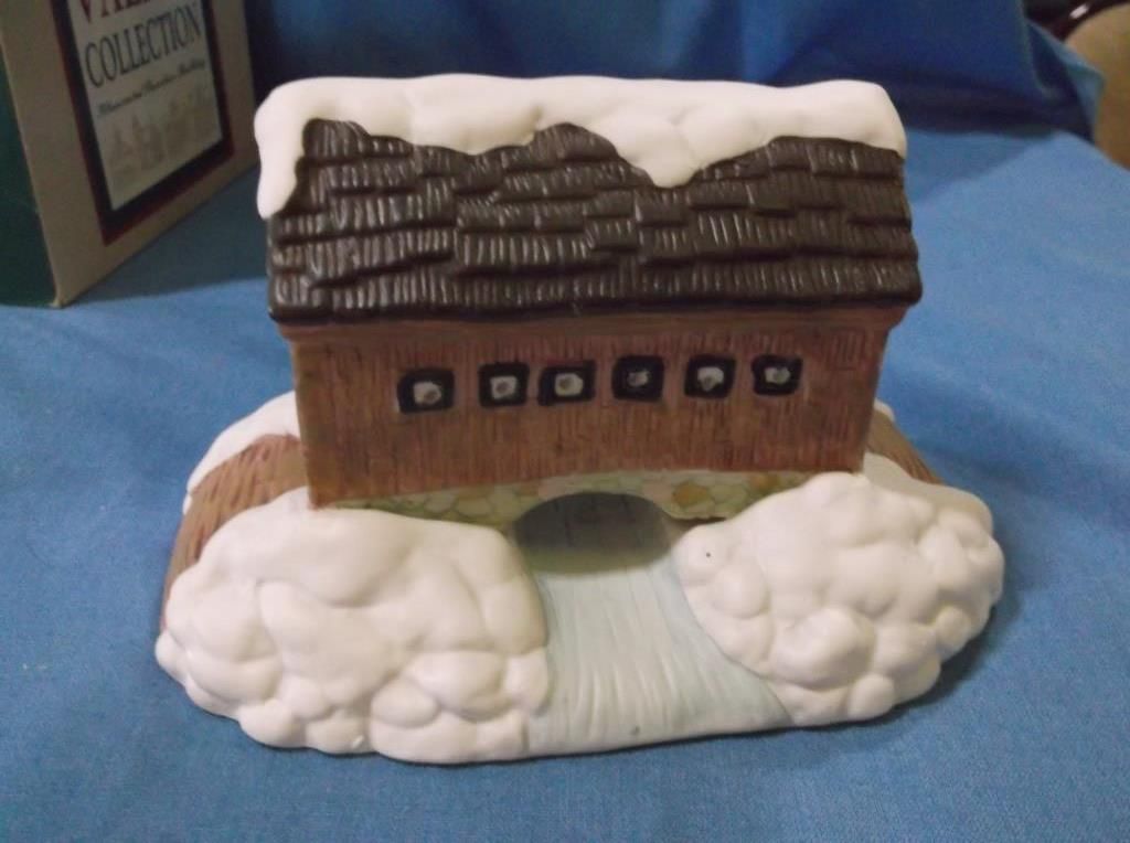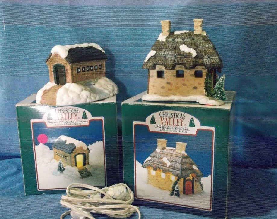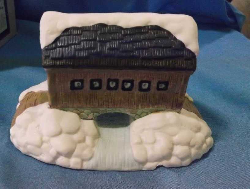 1- Snow Covered Bridge approx 7" x 5" in box no cord, 1- Holley Skill Place approx 6' x 6: in box with cord.. all hand painted porcelain.....