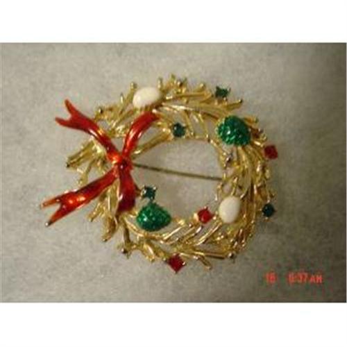 <tr><td>Title:Christmas Wreath Rhinestone Enamel Brooch</td></tr>