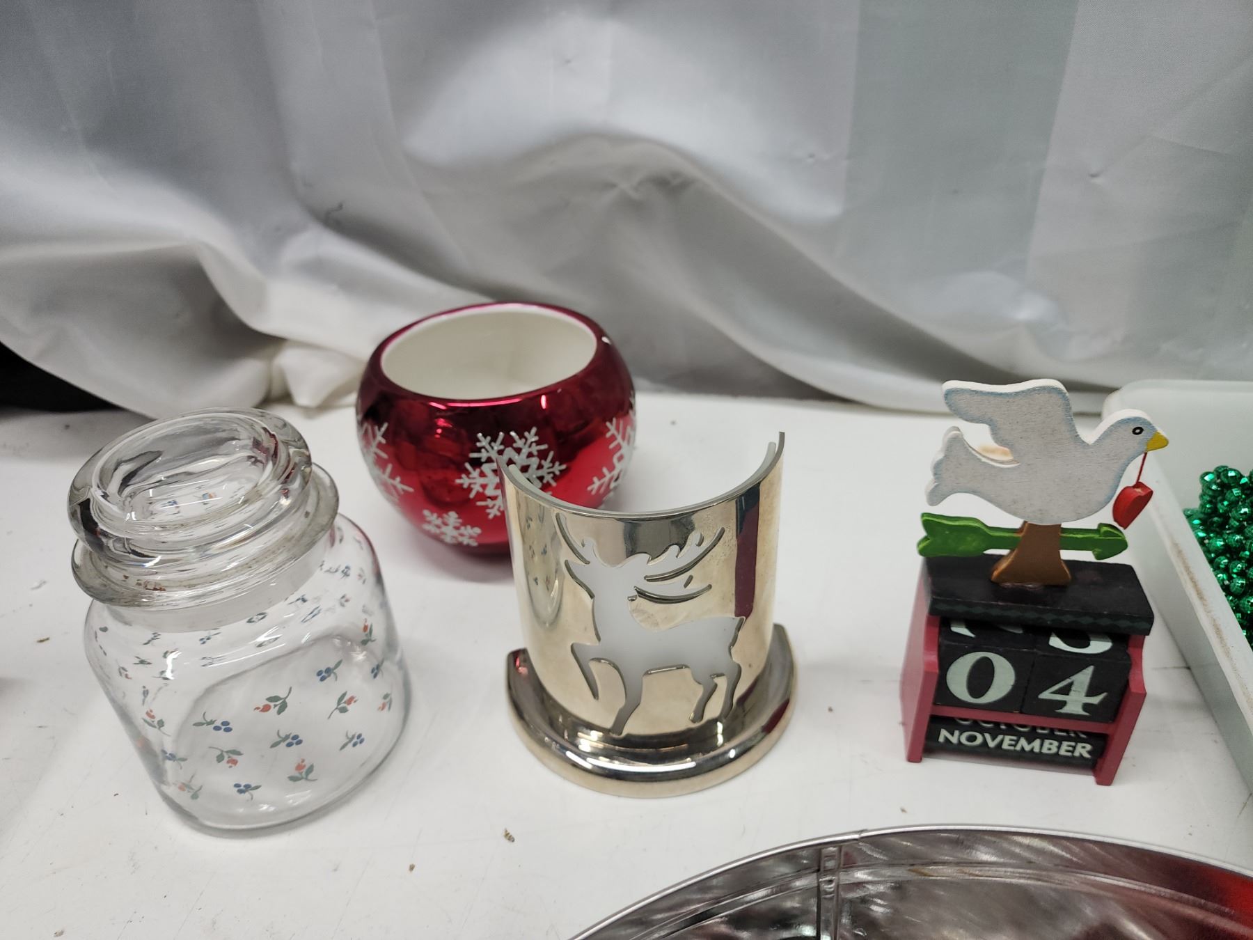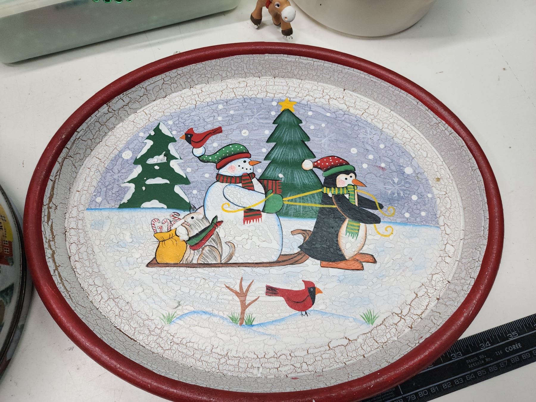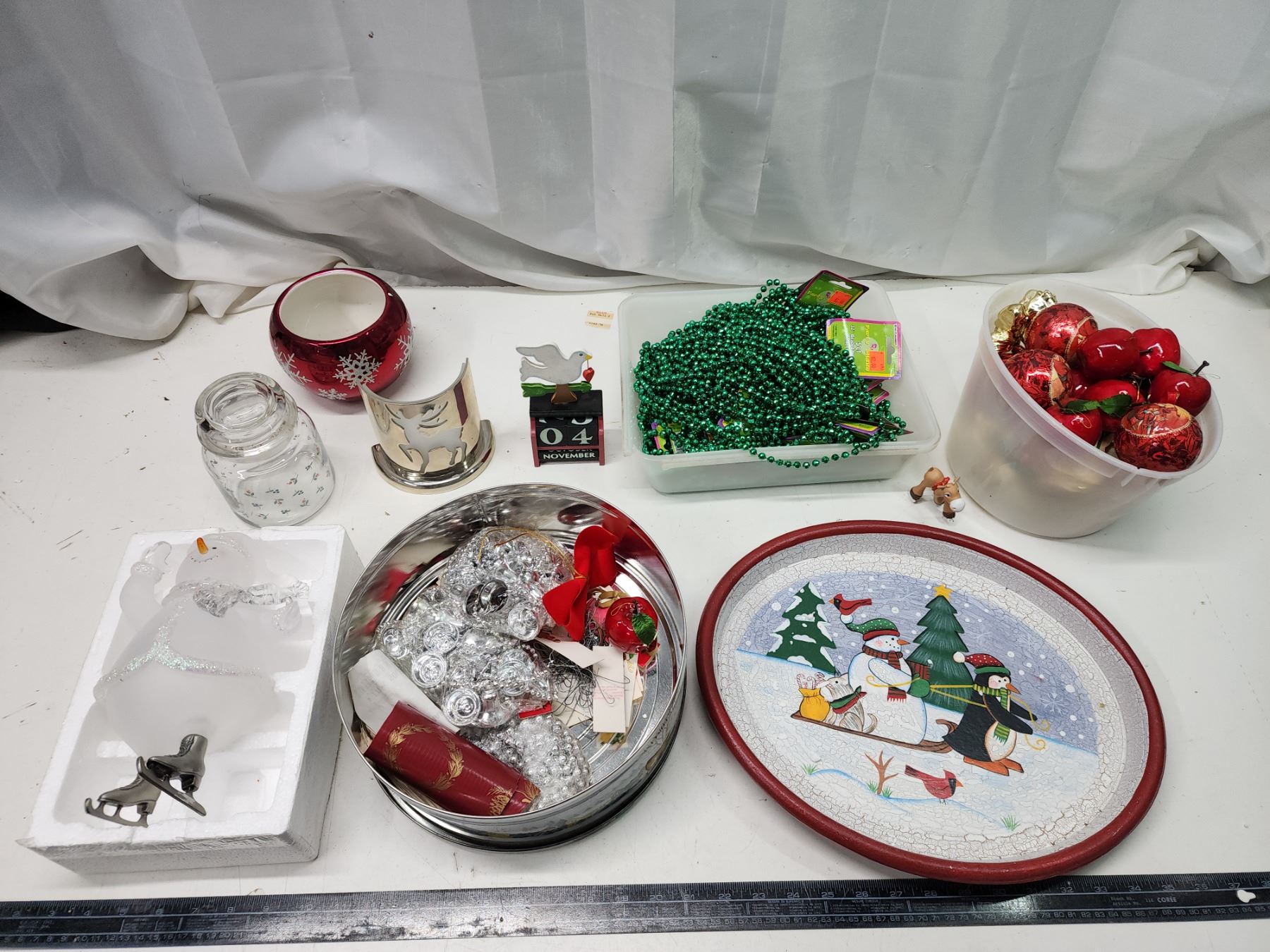 Christmas décor - tree ornaments, snowman figure, etc.