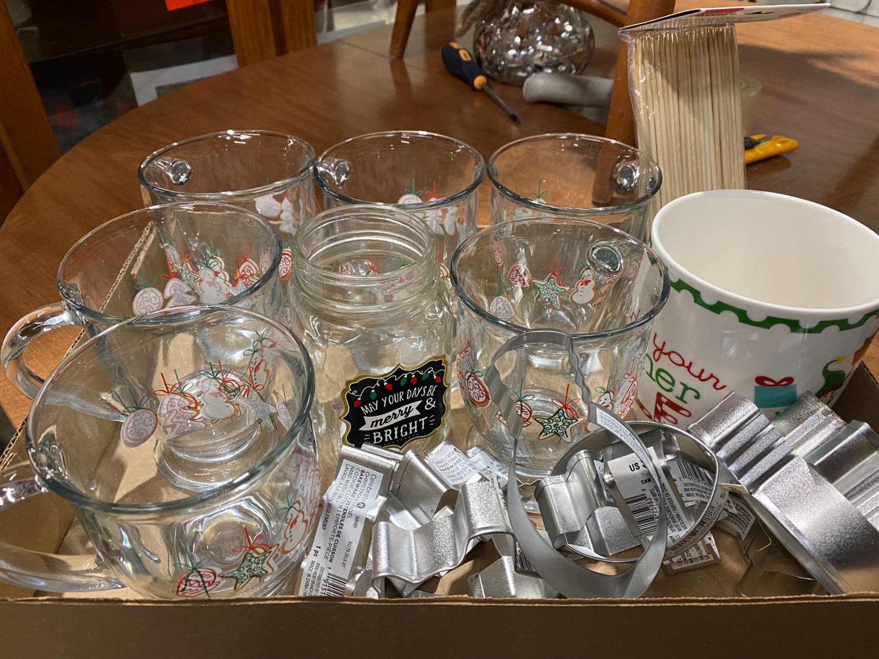 Christmas mugs, skewers and cookie cutters