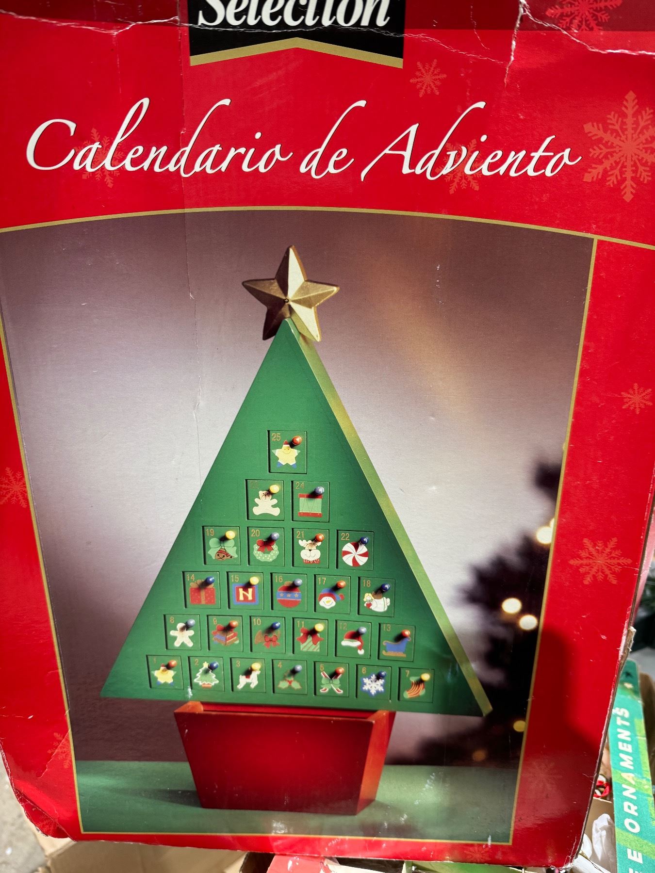Christmas tree and decorations and advent calendar