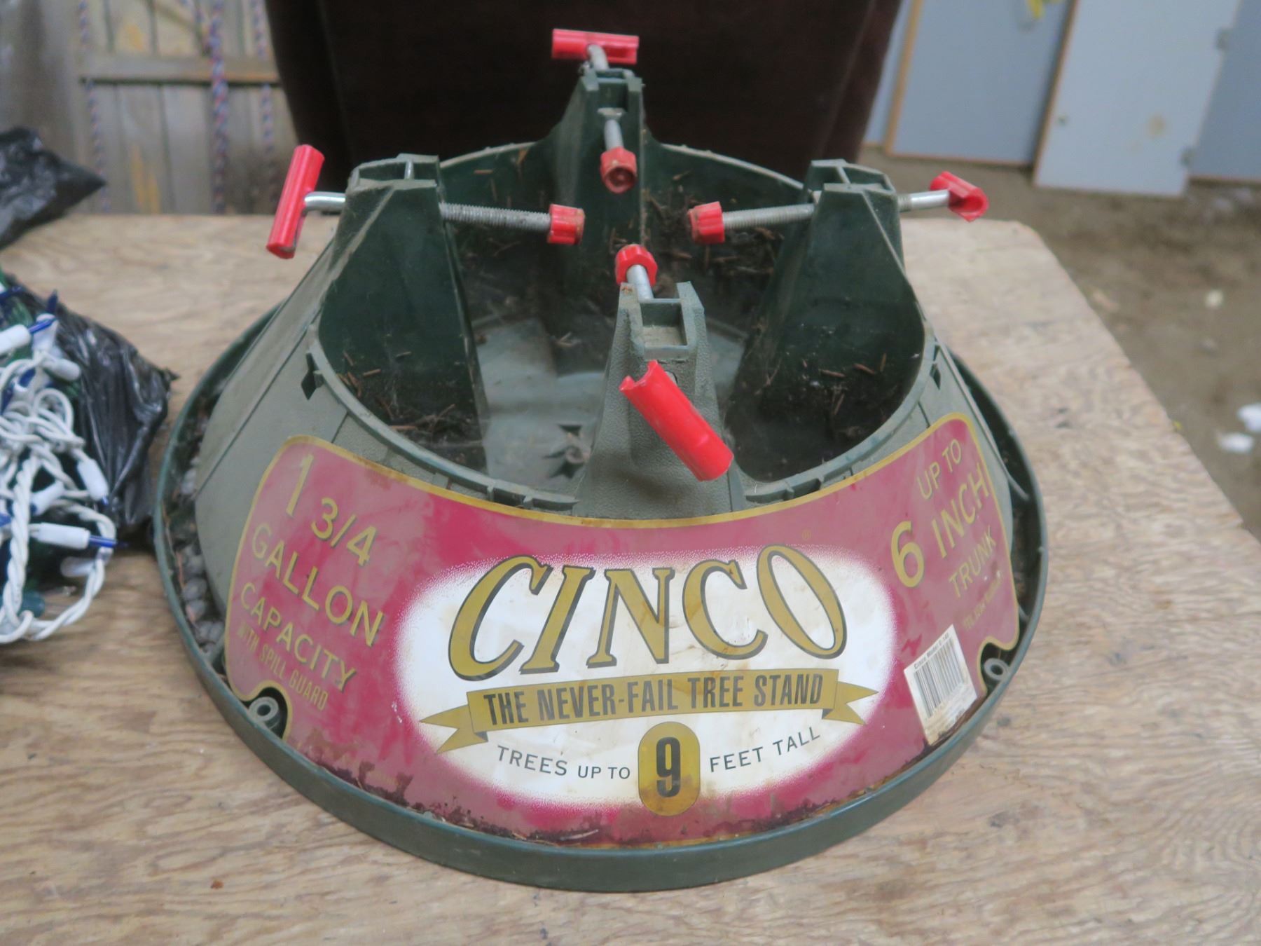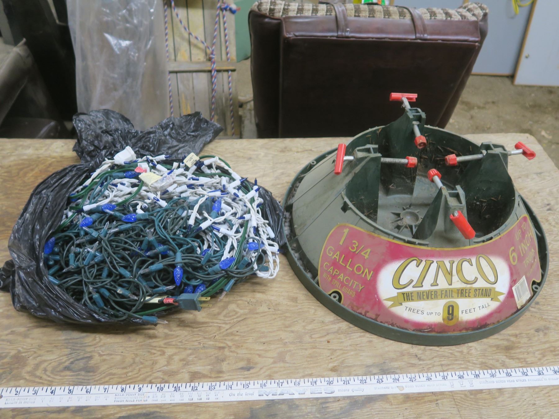 Christmas tree stand and lights