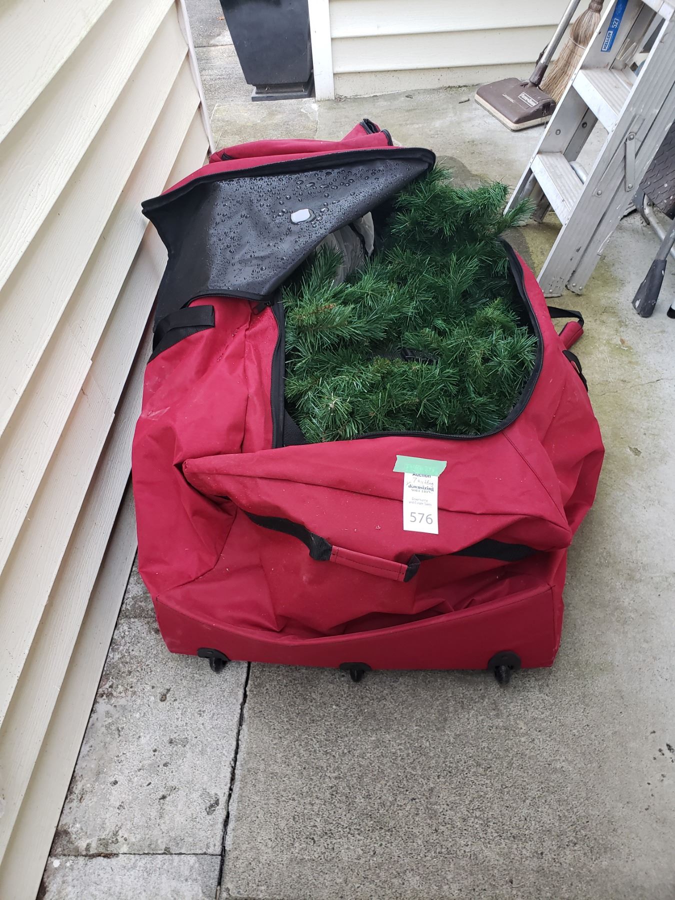 Christmas tree approx. 7 ft. In large bag. Pickup in category A between 9 and 10am.
