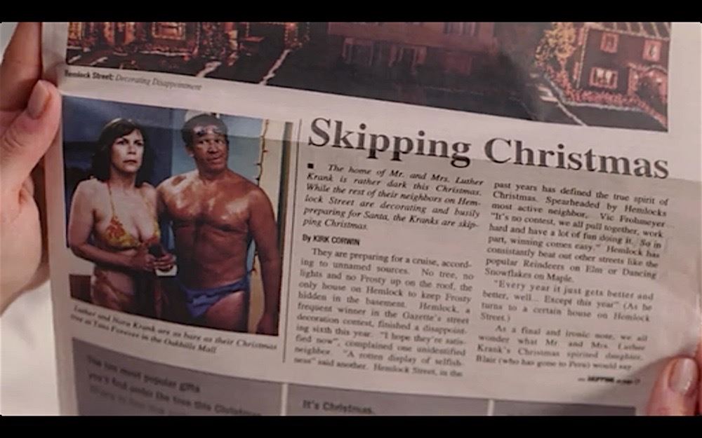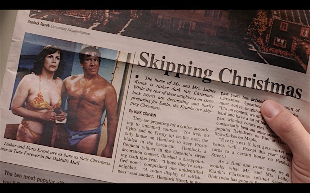 (Revolution Studios, 2004) This prop newspaper was custom printed by the production for use by Tim Allen as "Luther Krank" and Jamie Lee Curtis as "Nora Krank". The Wednesday Journal newspaper features the headline "Skipping Christmas" with the images of Luther and Nora Krank at the tanning spa and their un-decorated house. The newspaper remains in very good condition and measures 11.5" x 14".