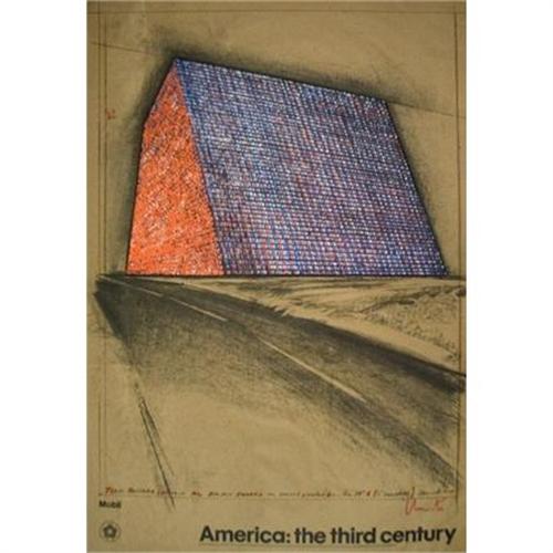 Lithograph On Brown Paper-signed 35x24 inches Very little handling,High Quality Paper Texas Mastaba by Christo : From a series commissioned by Mobil Oil Corporation for the Bicentennial. Recognized by the American Revolution Bicentennial Administration.