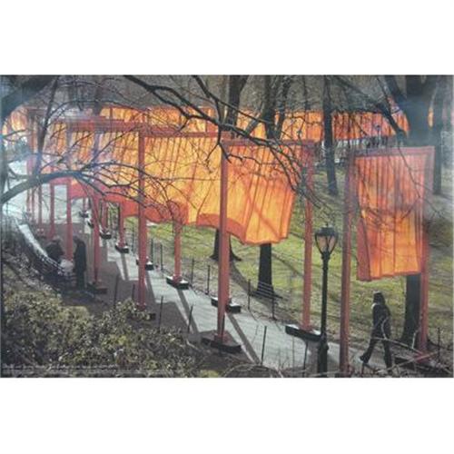 Notes:Signed in felt pen "Christo and Jean-Claude", this poster is part of a first series of photographs taken and published during the installation of the Gates Project in New York in February of 2004. This image is very rare. The first set of photographs that had been chosen to be published by Christo and Jean-Claude were destroyed shortly after a snowfall proved to be a much nicer background for the Gates hanging all around the park. A whole new set of phtographs were taken and published to replace the initial ones. The signed poster measures 20 x 30 inches. It is not numbered but only 50.