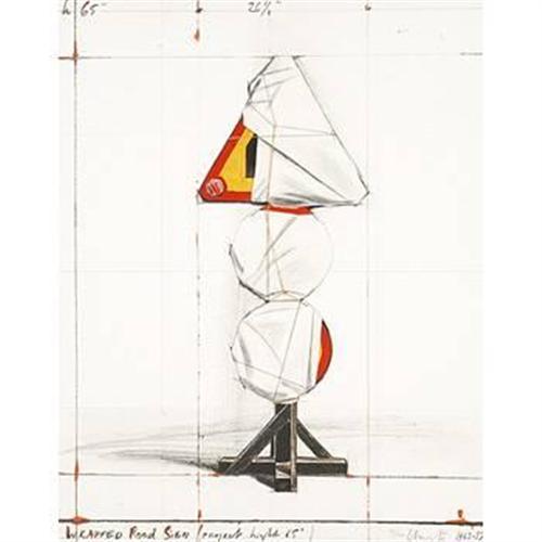 Christo Wrapped Road Sign USA, 1963-87 lithographic print with fabric wrapped collage and string 28 h x 21.5 w inches Titled and dated in the stone lower edge: [Wrapped Road Sign 1963-87]. Signed and numbered in pencil lower right: [Christo 92/100]. Framed. Provenance: Private collection, Chicago