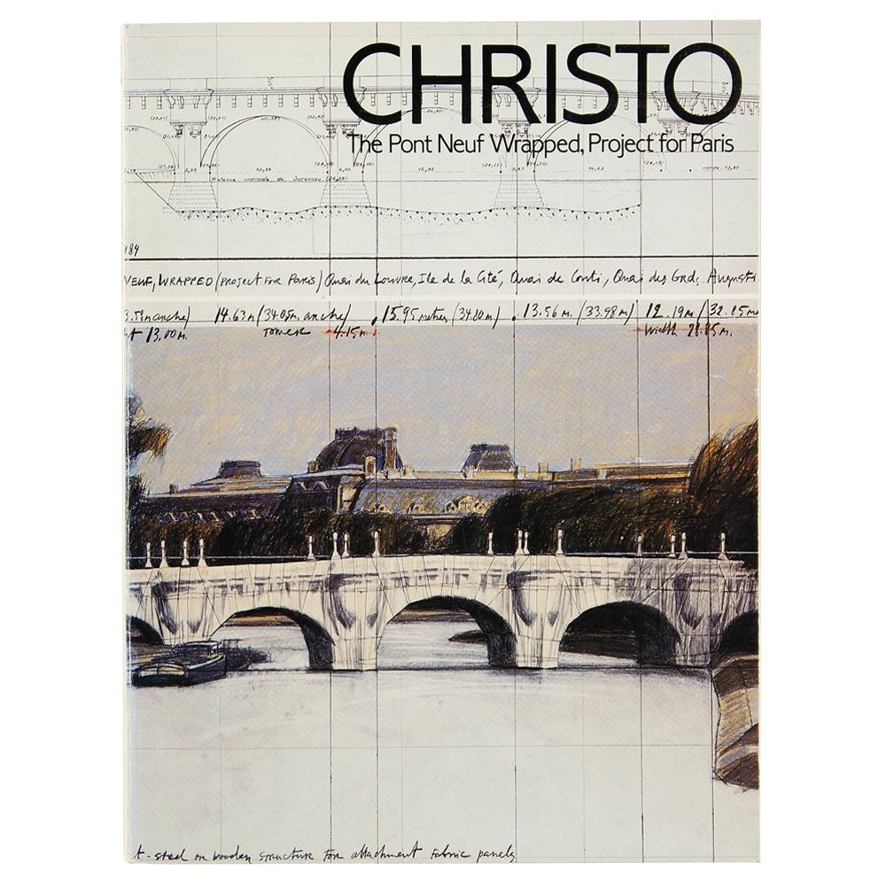 Scarce and desirable even in unsigned examples. this is the catalogue published in conjunction with a 1984 exhibition of preparatory works for Christo and Jeanne-Claude's 'Pont Neuf Wrapped' project realized in Paris the following year. Held at the artist's longtime Japanese gallery, it contains copious illustrations along with an essay by Yusuke Nakahara, and a lengthy interview between Christo and Masahiko Yanagi.