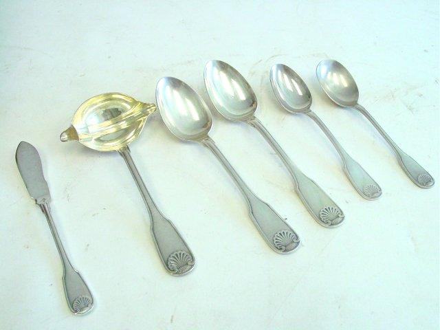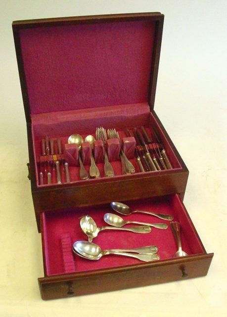 Includes: 8 butter knives, 8-8.25" knives, 1-9.5" knife, 7 salad forks, 7 forks, 6 teaspoons, 7 soup spoons, 2 serving spoons, 1-7" ladle, 1 cheese knife.