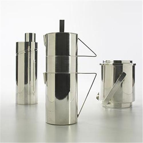 Christofle<BR>cocktail set<BR>France, c. 1970<BR>silverplate<BR>Set includes ice bucket, cocktail shaker and stacking sugar bowl, creamer and pitcher. Impressed manufacturer's marks to underside of each piece: [Italy Prod Christofle Gallia] with impressed silver touchmarks. <BR><BR>Condition of the item is not included in this description. Condition reports are available from Wright upon request. Wright strongly recommends that you review a condition report for each item on which you plan to bid.