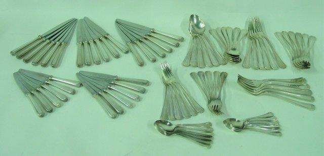 Approx. 82 pcs. Includes: 17-8 1/8" forks, 11-7 1/8" forks, 12-5.5" teaspoons, 12-8" spoons, 12-8" knives & 18-9.75" knives.