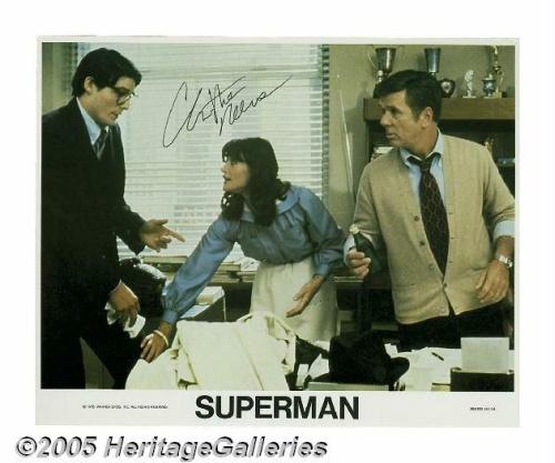 <B>Christopher Reeve Signed Lobby Card.</B></I> Featured in this lot is a promotional still from the 1978 movie "Superman," the film that layed the groundwork for all comic book movies to follow, signed by the "Man of Steel" himself. A great item for fans and autograph collectors. <I>With COA from PSA/DNA.</B></I>