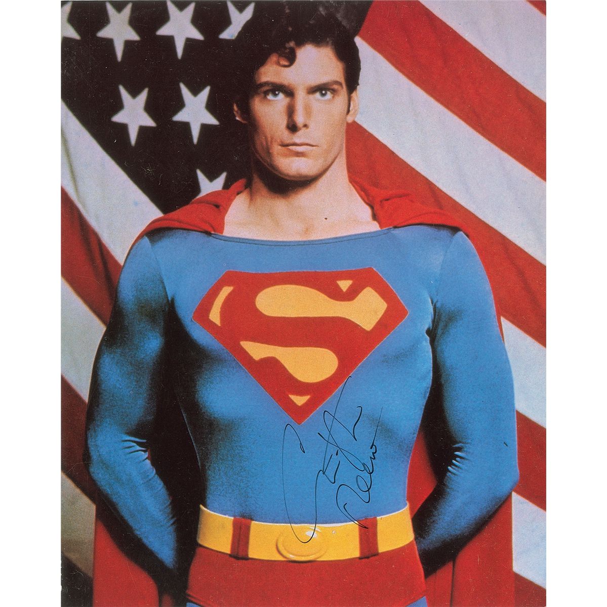 Desirable uninscribed semi-glossy 8 x 10 cardstock photo of Reeves in his classic Superman costume, signed in black felt tip. In fine condition, with trivial dings to edges.