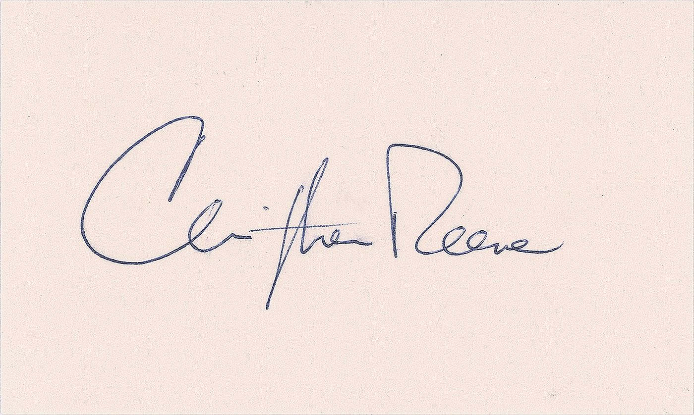 Ballpoint signature, "Christopher Reeve,” on an off-white 5 x 3 card. In very fine condition.