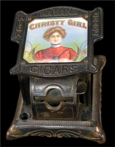 Christy Girl Havana Cigar Cutter & Match Dispenser Cast Iron