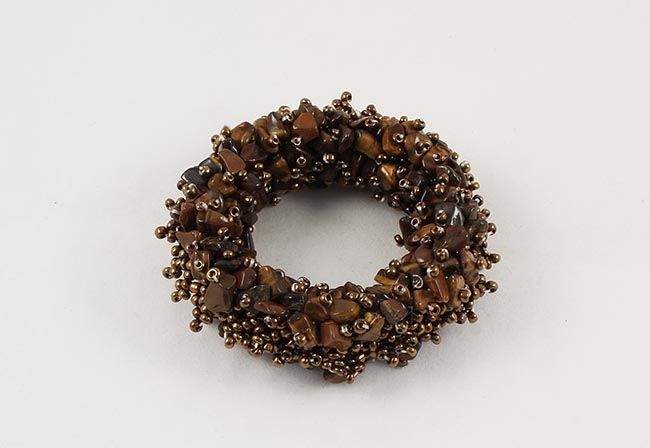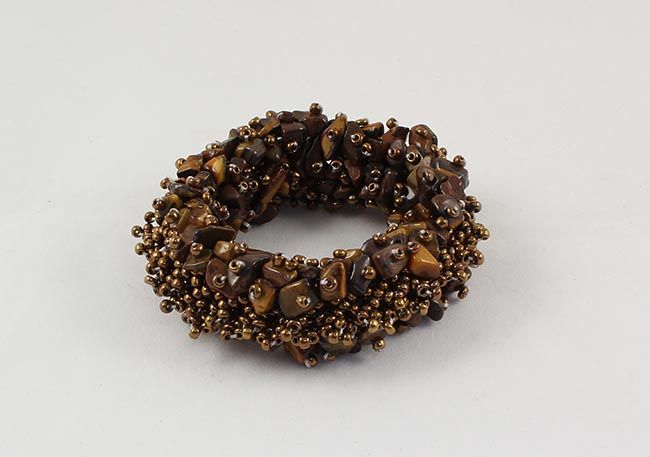 Chrocheted Wrap Bracelet with Beads & Gemstone **|**|** 390.00CARAT Hand Crocheted Tiger Eye Chip and Beads Wide Stretch Bracelet. One size fits all. ; MSRP: $0