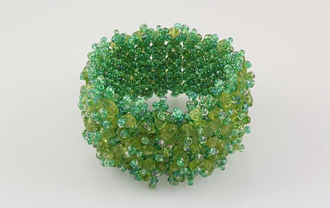 Chrocheted Wrap Bracelet with Beads & Gemstone **|**|** 303.50CARAT Hand Crocheted Peridot Chip and Beads Wide Stretch Bracelet. One size fits all. ; MSRP: $0