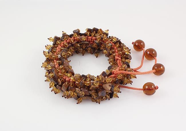 Chrocheted Wrap Bracelet with Beads & Gemstone **|**|** 385.50CARAT Hand Crocheted Tiger Eye Chip and Beads with Adjustable Closer. One size fits all. ; MSRP: $0